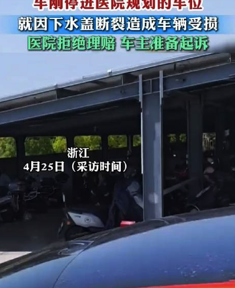车刚停进医院规划的车位,就因水盖断裂造成车辆受损。