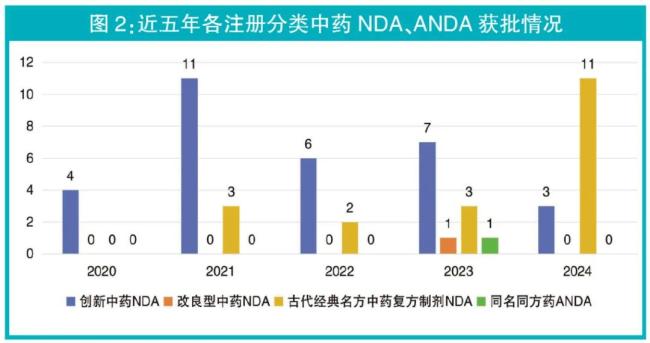 仅2024年,CDE发布的中药相关研究技术指导原则(试行)就涵盖多个实操层面,如制剂稳定性、制剂特征图谱研究、生产过程质量控制等方向;同时,对小儿便秘中药、改良型新药、用于紧张型头痛的中药新药临床疗效评价、濒危动物类中药材人工制成品的研究给予明确指导;并试行按古代经典名方目录管理的中药复方制剂药学申报资料撰写指导原则,直接指向中药新药研究质量与数量的稳步提升。