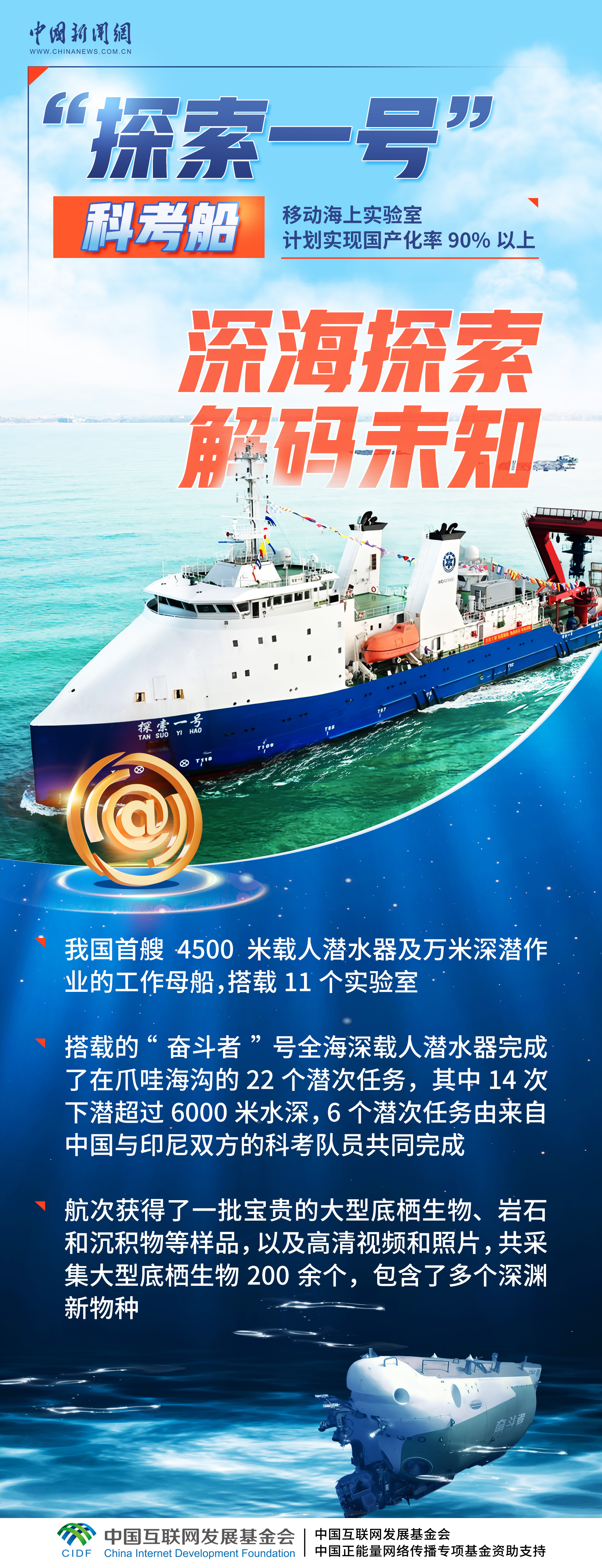 在2024中国正能量网络精品征集展播活动的聚光灯下,我们看到从幽蓝深海到浩渺星空,中国科技正以破浪穿云的姿态,书写一部跨越海天的东方探索史诗。大洋钻探船“梦想”号以万米钻探叩击地球“心脏”,“探索一号”在深渊极境捕捞生命密码,“海基二号”挺立南海铸就“深海堡垒”;仰望苍穹,“神舟十九号”接力天宫筑梦,“行星际闪烁望远镜”将目光投向星辰之外的涟漪。此刻,我们以科技之光点亮复兴之路,用创新之笔续写人类文明新的华章。