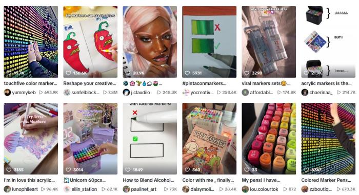 (海外社媒上网友晒出了很多马克笔开箱、涂色的短视频)