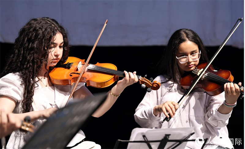 两位拉小提琴的女孩。人民网 伊纳斯·易卜拉欣摄