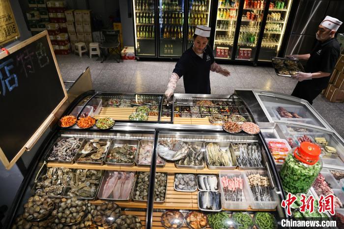 图为孙永虎(右)在备菜中。中新社记者 于海洋 摄