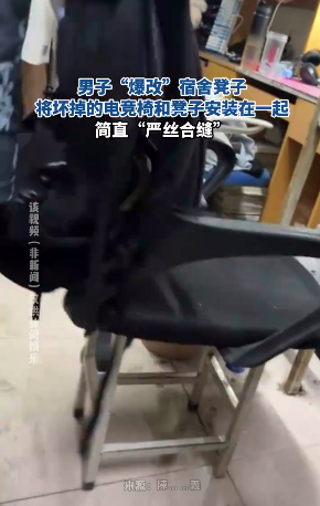 男子“爆改”宿舍凳子,将坏掉的电竞椅和凳子安装在一起,简直“严丝合缝”。
