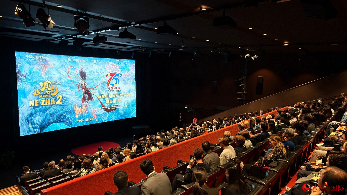 人民网斯德哥尔摩5月24日电 (记者殷淼)当地时间5月24日,中国驻瑞典大使馆在瑞典电影学院举办庆祝中瑞建交75周年电影招待会。中国驻瑞典大使崔爱民出席招待会并致辞。瑞各界友人和旅瑞侨胞、中资机构、留学生代表等600余人齐聚一堂,畅叙友谊,共同观赏国产动画电影《哪吒2》。