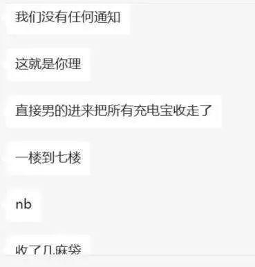 7月15日,有网友发帖称,华东理工大学徐汇校区工作人员当天突袭学生宿舍,没收了学生放在宿舍内的所有充电宝。网友公布了与学校工作人员的聊天记录,表示自己没有接到任何通知,就有男性进入宿舍,将一到七楼的所有充电宝都收走了,不论这些充电宝是否有3C认证。工作人员回复说,充电宝属于违规电器。网友还展示了一张落款为学生公寓管理中心的违规电器查收单,上面写着:“因在学生宿舍违规使用电器充电宝,于2025年7月15日被代为收缴保管。”