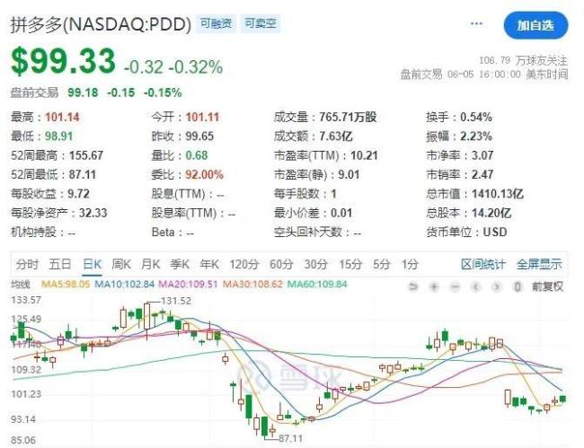 炸裂的财报数据一发布,拼多多股价大跌20%,跌破100美元关口。