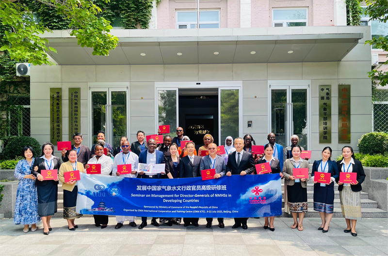人民网北京7月22日电 (记者刘文璋)由商务部主办、中国气象局气象干部培训学院(国合中心)承办的“发展中国家气象水文行政官员高级研修班”“全球发展倡议下应对气候变化和绿色发展研修班”联合结业仪式日前在京举行。