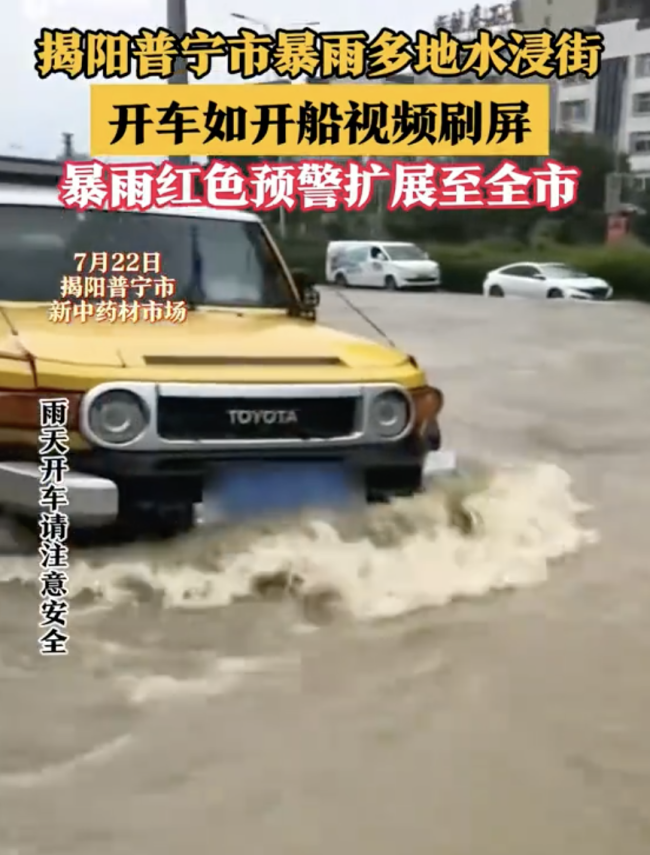 广东普宁暴雨多地水浸街 开车如开船。月22日,广东普宁市受台风“韦帕”外围环流影响出现持续性强降雨,多地严重内涝致街道积水成河。