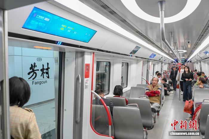12月29日,广州地铁二十二号线后通段正式开通初期运营,广州地铁线网运营总里程达到779.9公里。二十二号线后通段的开通实现了广州西部与南部的快速轨道交通联系,增强了广州南站的综合交通枢纽功能,同时承担连通广州南站、白鹅潭两大枢纽的重要作用。图为市民在二十二号线芳村站拍照留念。中新社记者 陈骥旻 摄