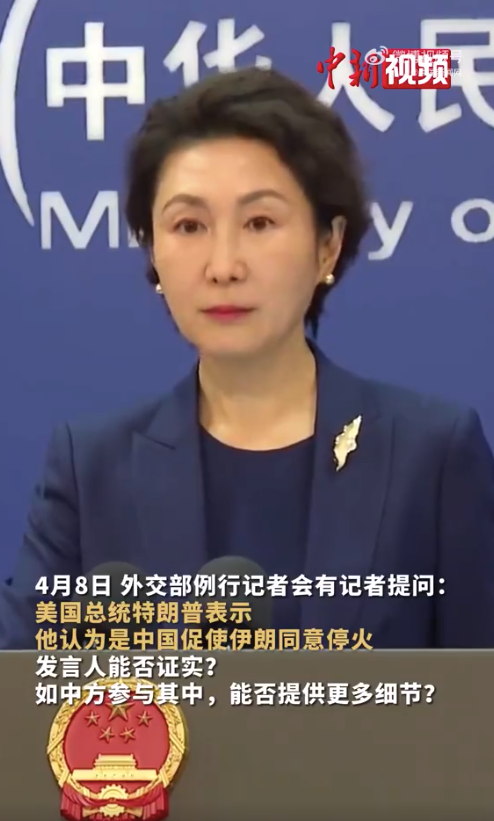 有记者提问:美国总统特朗普表示他认为是中国促使伊朗同意停火,发言人能否证实?如中方参与其中,能否提供更多细节?