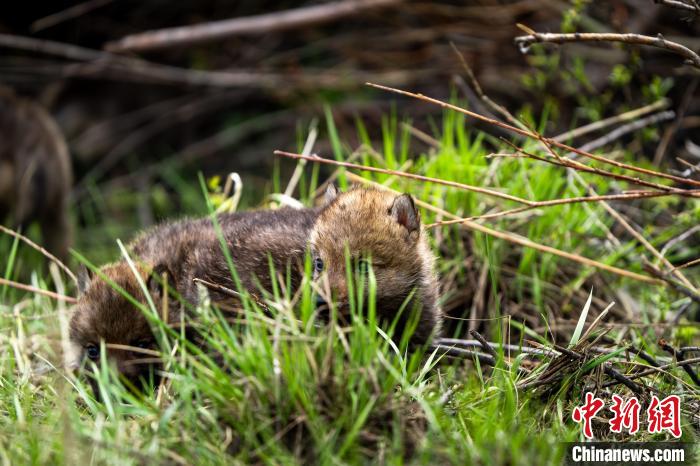 近日,一只小狼崽在内蒙古呼伦贝尔草原上好奇地探索世界。田昊霖 摄