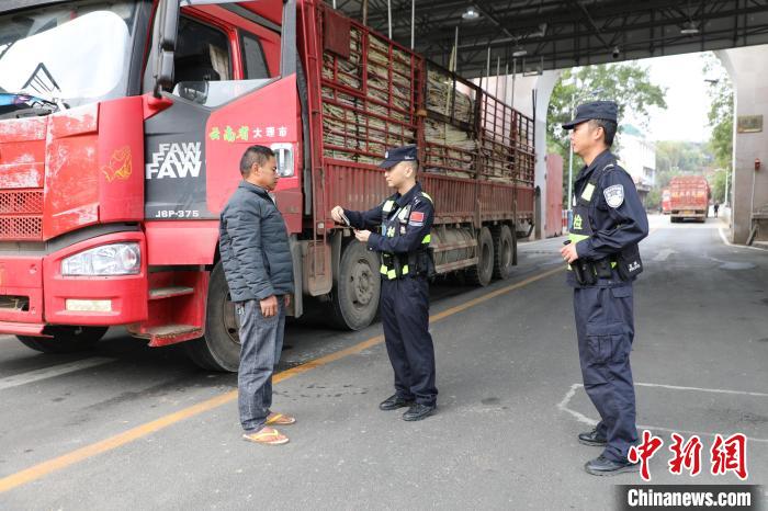 民警在清水河口岸查验入境甘蔗运输车辆。清水河边检站 供图