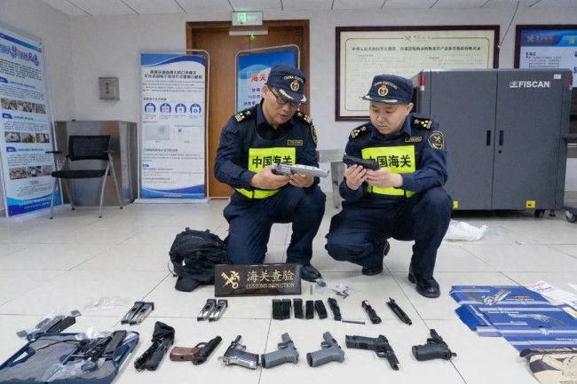 海关方面提醒公众,我国对枪支实施严格的管制制度,包括各种武器、仿真武器、弹药及爆炸物品在内的物品均被列为禁止进出境物品。