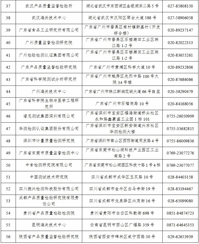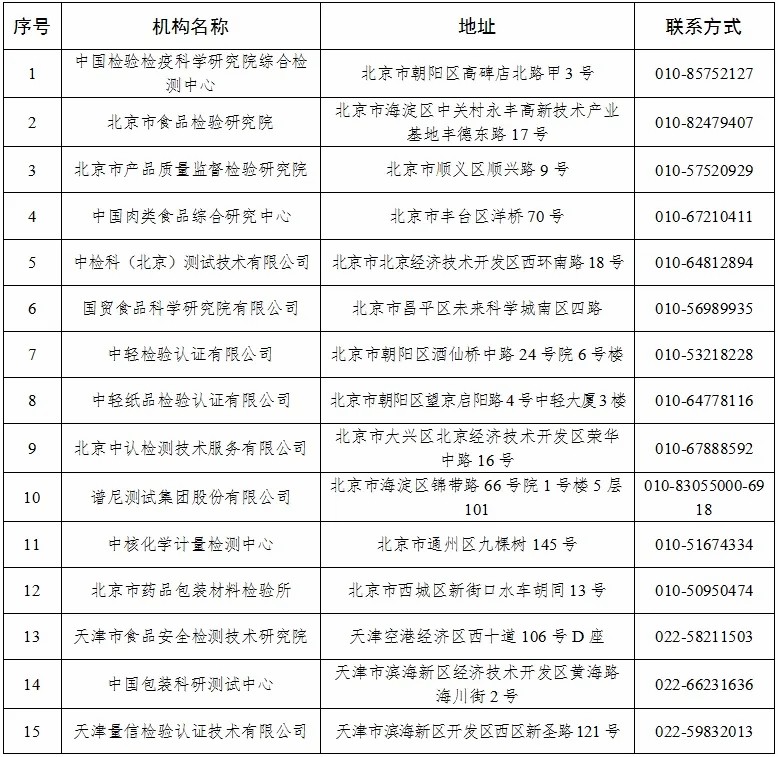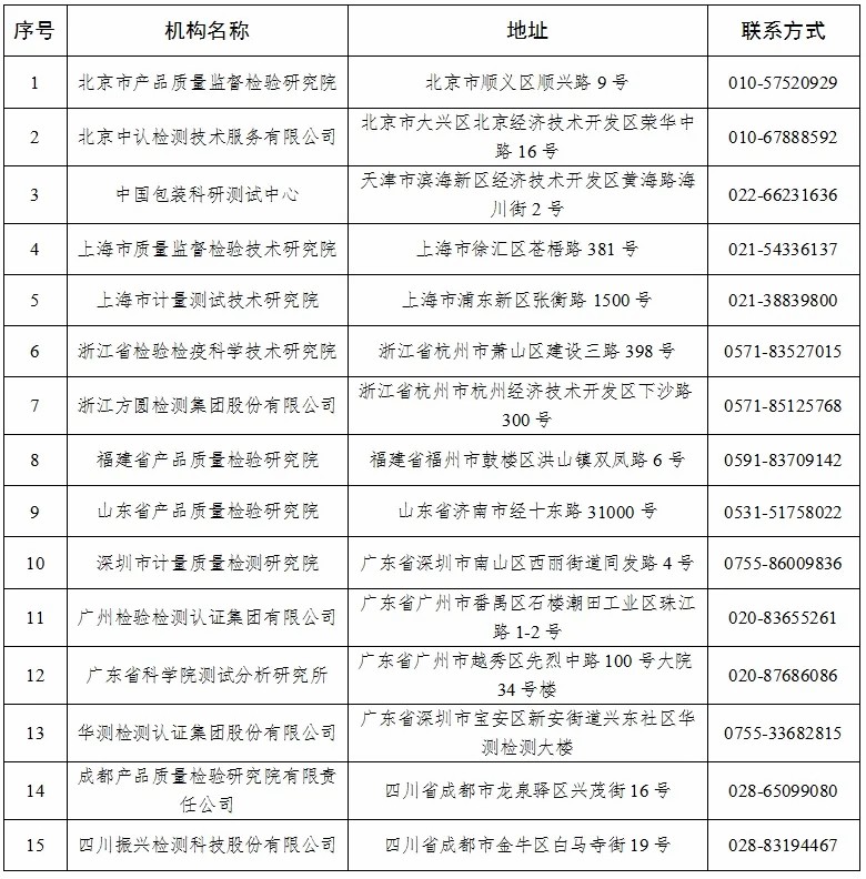 具有《限制商品过度包装要求 食品和化妆品》(GB 23350—2021)检测能力的检验检测机构名单
