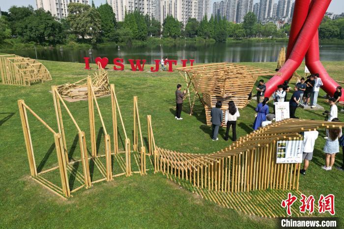 19日,台北科技大学师生搭建的驿站“间”在西南交通大学展示。中新社记者 张浪 摄