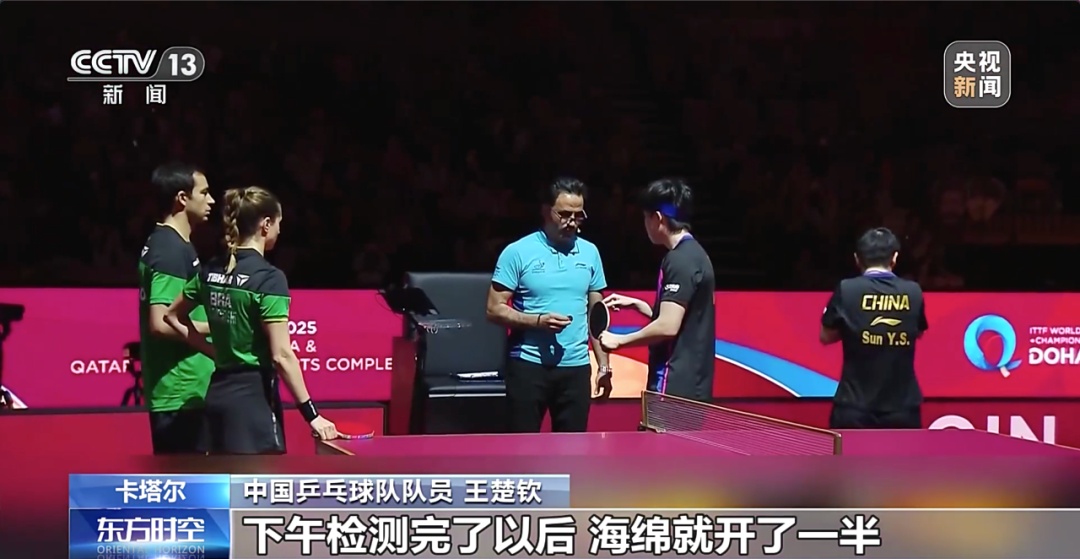 按照规定,王楚钦的球拍理应在检测确认无误后,才能够装袋、拿上场。经过分析,接触王楚钦球拍的人员不超过四位:负责球拍检测的工作人员、相互之间检查球拍的对手球员,还有就是当场的主裁判,因为运动员的球拍都是经过主裁判之手之后才能拿到。