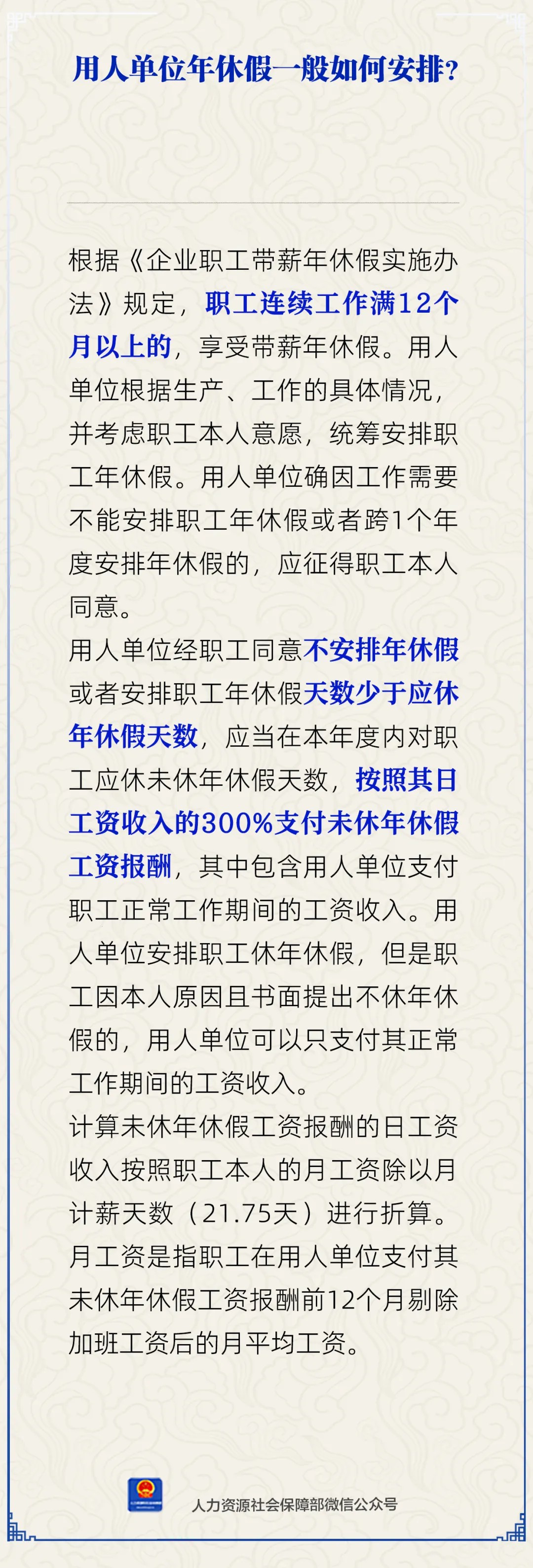 中新网5月28日电 用人单位年休假一般如何安排?对此,人社部28日通过官方微信公众号作出解答。
