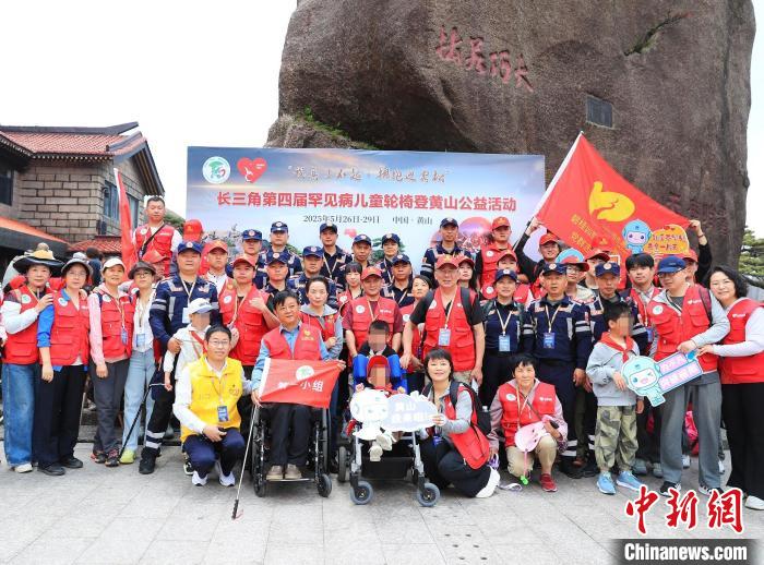 中新网合肥5月28日电 (刘鸿鹤 刘凯星)在"六一"国际儿童节来临之际,"我真了不起·拥抱迎客松"长三角第四届罕见病儿童轮椅登黄山公益活动27日在安徽黄山启动。来自全国各地的31名罕见病儿童在志愿者和工作人员的帮助下,成功登顶黄山,近距离观赏"国宝"迎客松。