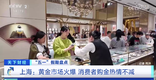 这个“五一”假期,黄金市场出现了一波消费热潮。记者来到上海豫园商圈,当天,这家黄金店铺的足金饰品报价已跌破千元,为995元/克,吸引了不少市民游客当场下单。此外,“进店赠礼”“克减”等促销活动,也激发了不少消费者的购买热情,部分门店排起了长队。