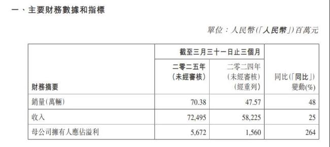 吉利汽车Q1实现营收725亿元,同比增长了25%;归母净利润56.7亿元,同比激增264%;一季度汽车销量更是高达70.38万辆,创历史单季新高。