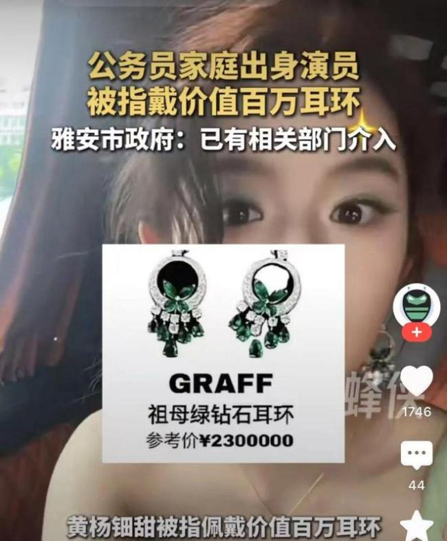 黄杨钿甜删除百万耳环照片 家庭财富引发公众质疑。2023年5月11日,17岁演员黄杨钿甜在社交平台发布成人礼照片,佩戴的耳环被网友指认为奢侈品牌GRAFF经典系列,市场公价约230万元。这一事件迅速引发公众对其家庭背景和消费能力的关注。