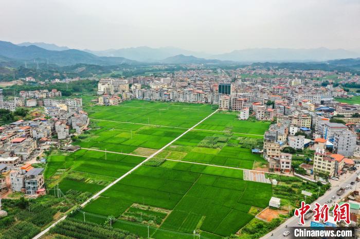 近日,航拍广西梧州市苍梧县沙头镇,镇区与周边乡村连为一体。楼房、稻田、道路、河流与山峦相映成趣,勾勒出一幅自然与人文和谐共生的绚丽图景。黎杰源 摄