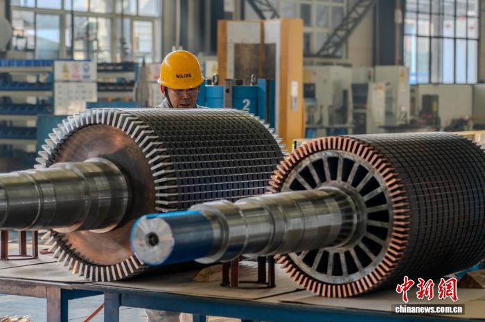 图为转子平衡工序上忙碌的工人。中新社记者 李超庆 摄