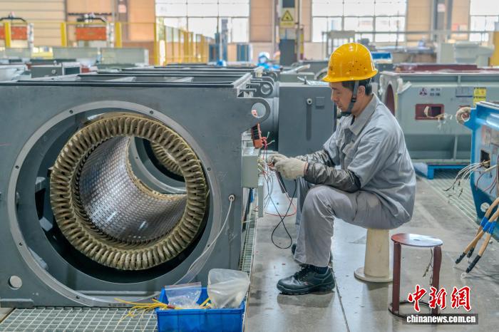 图为工人在进行定转子装配作业。中新社记者 李超庆 摄