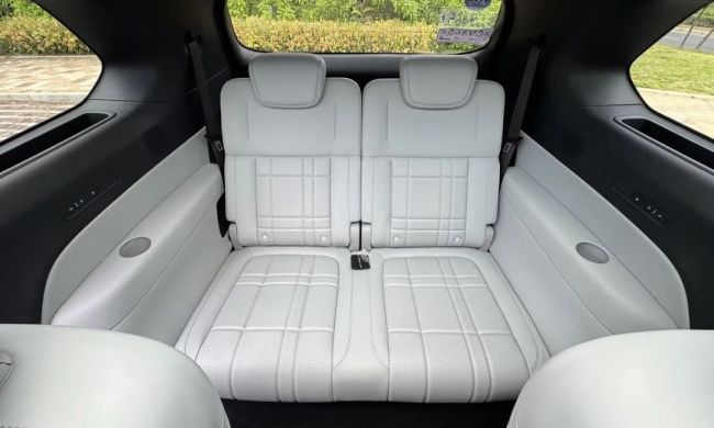第三排空间表现令人惊喜,腿部和头部空间充裕,没有局促感。第三排座椅还配备了加热功能,并支持靠背向后倾斜。配合大屏幕,打造出一个舒适的移动观影厅,让第三排乘客也能享受到尊贵的待遇。