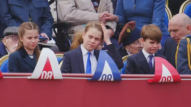 上午的伦敦阅兵式上,红箭飞行队的特技表演拉开了序幕,演员蒂莫西·斯波朗诵了丘吉尔1945年胜利演说的选段。威廉王子夫妇携乔治、夏洛特与路易三位孩子现身观礼,他们与查尔斯国王夫妇同坐主席台时收获了民众的热烈掌声。当军方方阵沿林荫大道行进时,天空新闻镜头捕捉到兄弟俩的逗趣互动:11岁的乔治伸手整理被风吹乱的刘海,7岁的路易立即浮夸模仿哥哥的动作,这一幕引发了社交媒体上的热议。