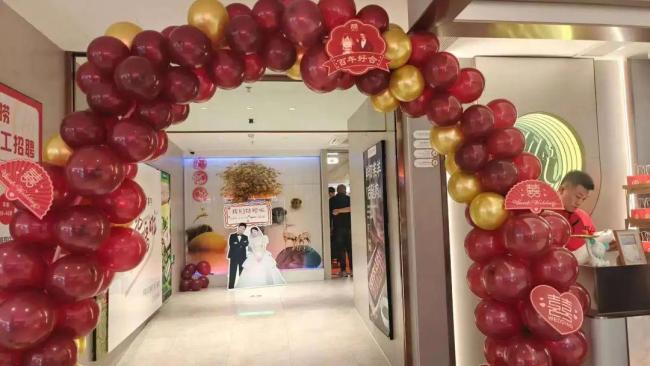 4月26日,他们联系了太原一家海底捞门店,表达了办婚宴的意愿。这家店能容纳约500人,他们一共140名亲友,相当于半包场。店家热情地答应了预定,还帮他们装饰了喜庆的墙面和灯牌。