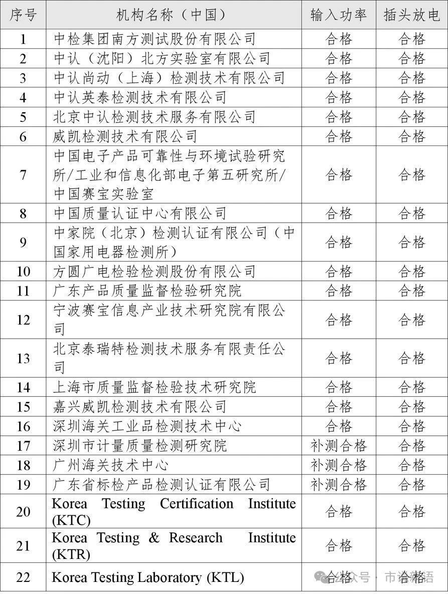 中韩电器产品检验检测能力验证结果名单