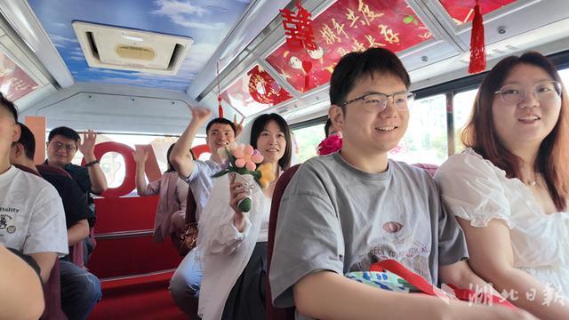 许多新人都乘坐了这趟公交婚车。万先生和妻子谢女士表示:“第一次坐这么喜庆的公交车,给我们领证的日子增加了很多不一样的感觉。”范先生和他的妻子则认为选择搭乘公交婚车集体领证不仅响应低碳环保理念,还独特且有意义,与其他新人共同分享喜悦十分热闹,集体颁证仪式也让他们感受到社会对婚姻的重视和祝福。