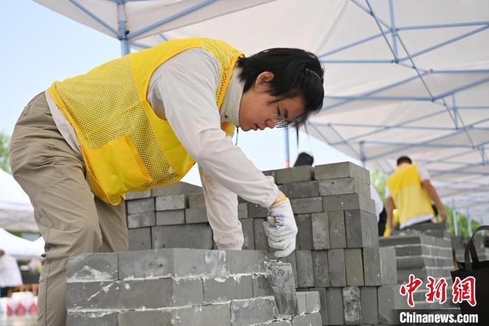 5月22日,西北四省(区)文物保护工匠技能竞赛暨甘肃省第一届文物行业职业技能竞赛在甘肃兰州举行。图为参赛选手张肇轩进行泥瓦作文物修复竞赛项目。九美旦增 摄