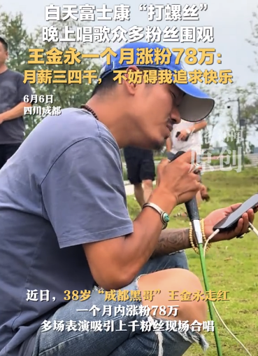 白天富士康“打螺丝”晚上唱歌众多粉丝围观,王金永一个月涨粉78:月薪三四千,不妨碍我追求快乐。