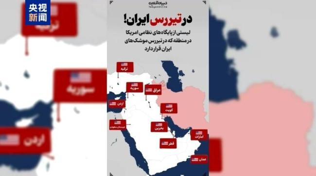 当地时间19日,伊朗塔斯尼姆通讯社发布了一张地图,显示了中东地区在伊朗导弹射程内的10座美军基地。这是对美国可能在未来几天空袭伊朗的威胁的回应。