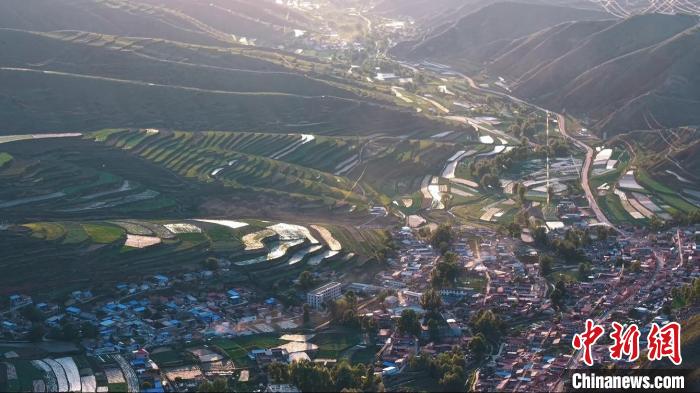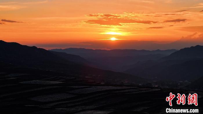 图为落日下的山川和村落。张冬青 摄