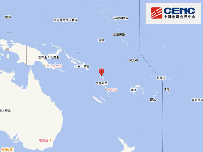中新网4月23日电 中国地震台网正式测定:04月23日00时55分在瓦努阿图群岛(南纬13.15度,东经167.05度)发生5.7级地震,震源深度210千米。