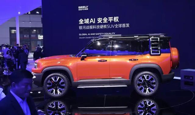 吉利银河战舰上海车展首发 科技硬核SUV引领新风尚!4月23日,上海国际汽车展览会上,吉利汽车推出了一款名为银河战舰方盒子SUV的新车型。这款车型被定位为“科技硬核SUV”,融合了前沿的AI智能四驱技术,旨在突破地形限制,实现“上山下海”的无限可能。