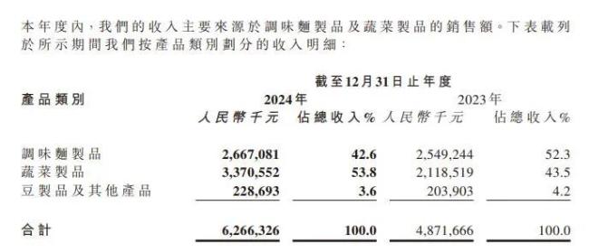 然而,2024年,卫龙美味实现收入62.66亿元。财报中,卫龙美味介绍,本集团坚持多品类的产品策略,涵盖了调味面制品、蔬菜制品、豆制品及其他产品品类。其中,调味面制品(俗称“辣条”)主要包括大面筋、小面筋、麻辣棒、小辣棒、亲嘴烧等。