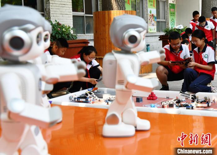5月27日,河北省石家庄市育才小学,学生参与体验多种科技赛事项目。中新社记者 翟羽佳 摄