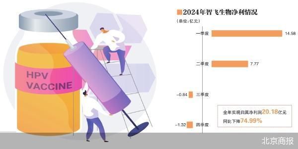 4月22日,智飞生物披露2024年年报及2025年一季报。财务数据显示,2024年,智飞生物实现营业收入260.7亿元,同比下降50.74%;实现归属净利润20.18亿元,同比下降74.99%。分季度来看,智飞生物自2024年三季度起净利开始出现亏损,一至四季度净利分别为14.58亿元、7.77亿元、-8369.64万元、-1.32亿元。