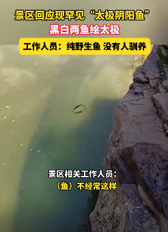 山西晋中景区回应现罕见“太极阴阳鱼”,黑白两鱼绘太极,工作人员:纯野生鱼没有人驯养。