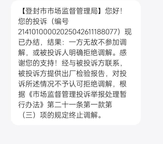 薛女士收到的反馈显示,厂家提供了出厂检验报告,并对投诉情况不予认可,拒绝调解。厂家称,为确保产品符合食品安全国家标准,公司员工在生产包装过程中已对每批次产品进行了严格的过程控制,未发现异常现象;化验员也对每批次产品进行了自检,未发现不合格现象。因此,厂家对薛女士提出的包装袋内有异物及赔偿要求不予认可,不参与调解。