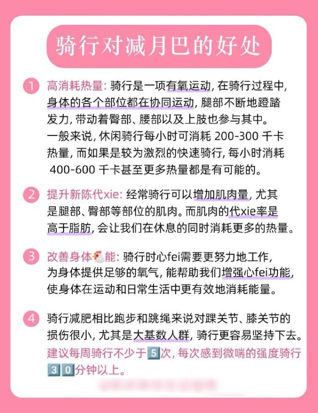正确的骑行更容易减脂,高消耗热量:骑行是一项有氧运动,在骑行过程中,身体的各个部位都在协同运动,腿部不断地蹬踏发力,带动着臀部、腰部以及上肢也参与其中。