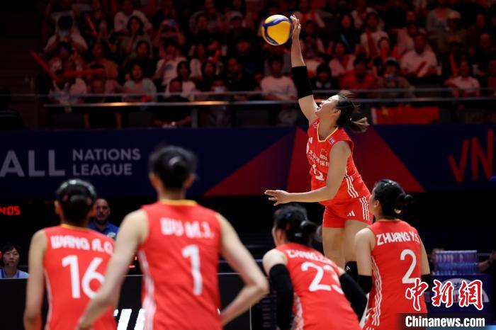 6月8日,2025世界女排联赛(中国北京站)展开最后一个比赛日的争夺。中国女排2:3不敌土耳其女排。图为中国选手龚翔宇(右二)进攻。中新社记者 富田 摄