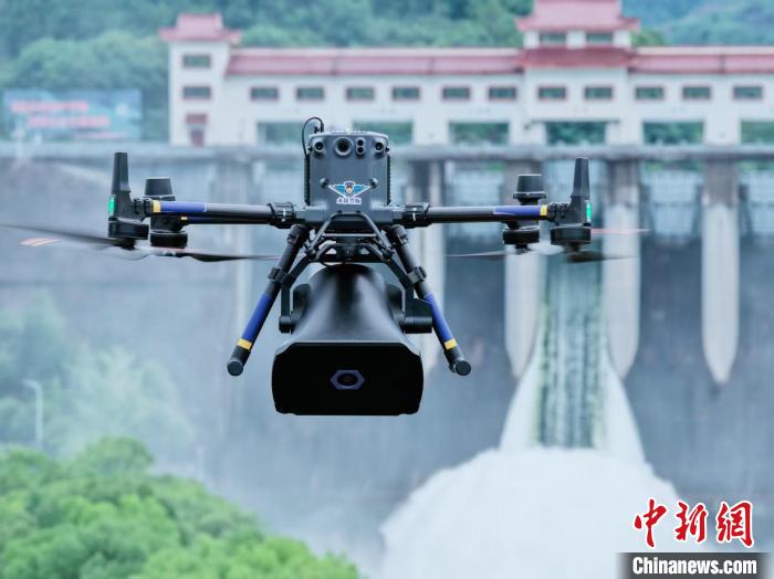 防汛期间,金华市公安局利用警用无人机,对辖区内河流、水库、山塘等重点防汛区域开展全方位安全“体检”,捕捉汛期可能出现的渗滑坡隐患,结合回传画面进行实地研判处置;警用无人机同步执行防溺水任务,对救生圈等安全器材进行“空中检查”,利用高空扩音器对周边居民进行安全提醒。