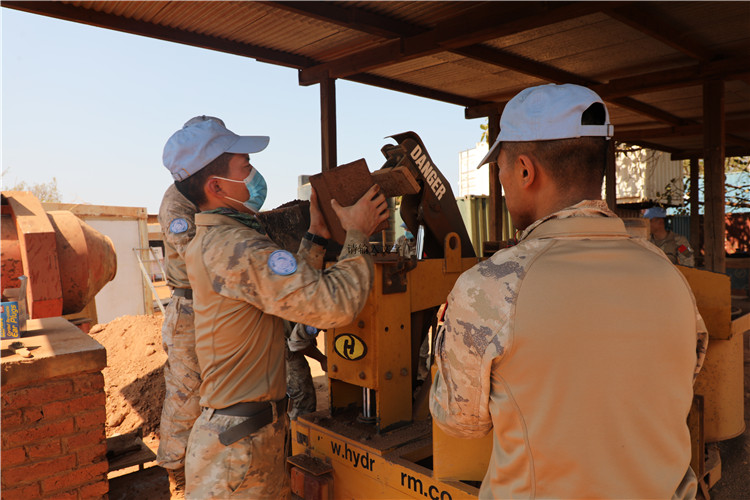 制砖现场。维和工兵分队供图