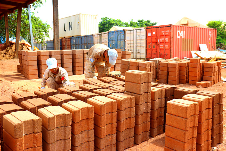 任务区长期面临资源匮乏难题,传统手工制砖效率低且污染严重。我维和工兵分队在深入调研后,结合当地黏土资源优势,利用电力驱动为核心的半自动化制砖系统,实现粉尘零排放。