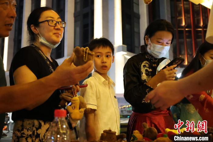 民众在“国潮中医馆”摊位购买中药材玩偶。周艺伟 摄